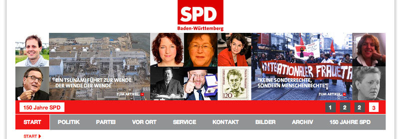 Beispiel eines Newsbox-Einsatzes (Startseite SPD-BW am 6.5.2013)